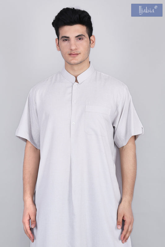 Kuwaiti Collar Mens Thobe - Half Sleeves - Light Grey