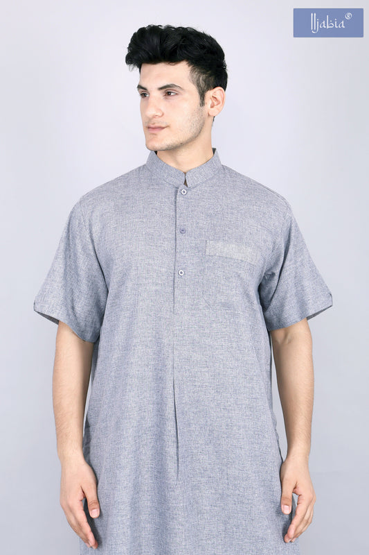 Kuwaiti Collar Mens Thobe - Half Sleeves - Bluish Grey