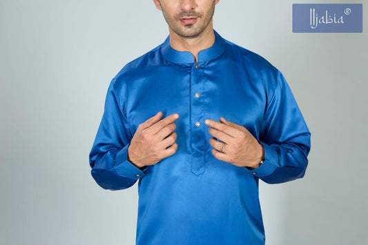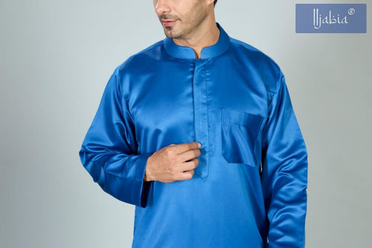 Full Sleeves Collar Men's Thobe with Buttons - Indian Shiny Fabric - Royal Blue