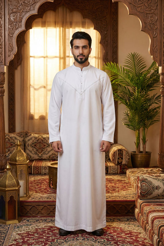 Emirati Mens Omani Thobe - Full Sleeves - White