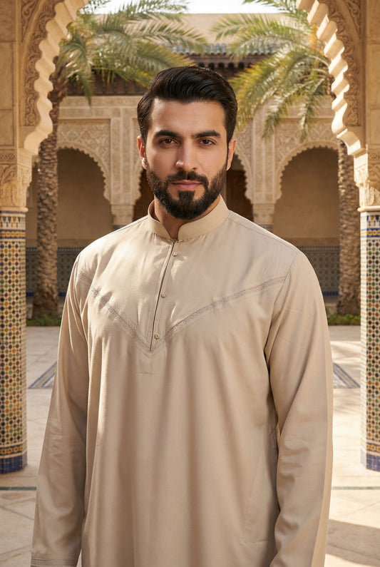 With our Arabic Thobe for Man, which is exactly appropriate for your way of life, find the core of comfort and elegance. Every item in our collection promises not just a garment but also a masterwork of workmanship as each one combines current fashion with cultural legacy.