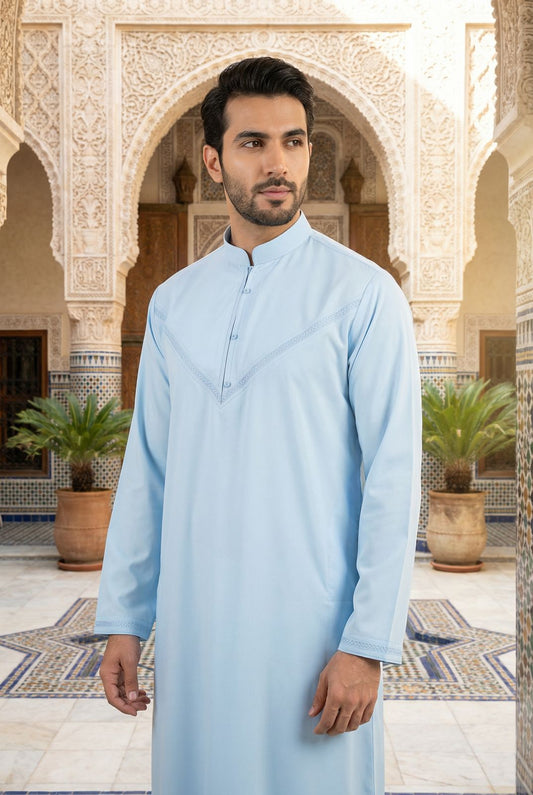Mens Collar Omani Thobe - Full Sleeves - Sky Blue