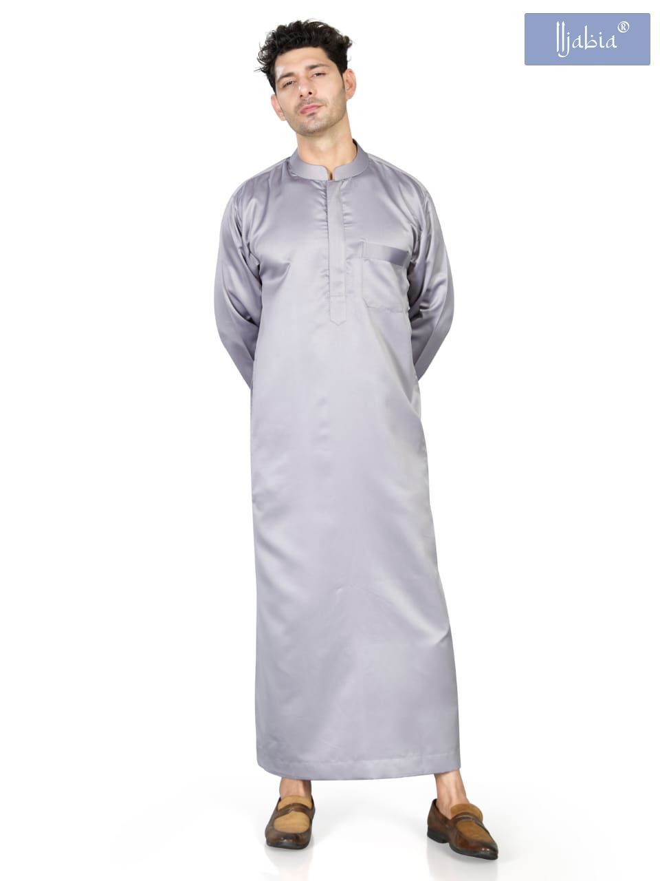 Full Sleeves Collar Men's Thobe - Indian Shiny Fabric - Light Grey