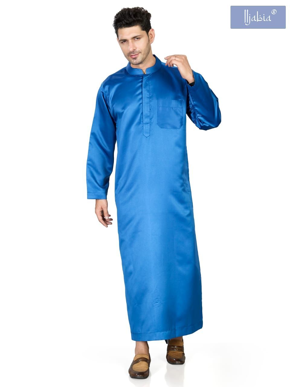 Full Sleeves Collar Men's Thobe - Indian Shiny Fabric - Navy Blue