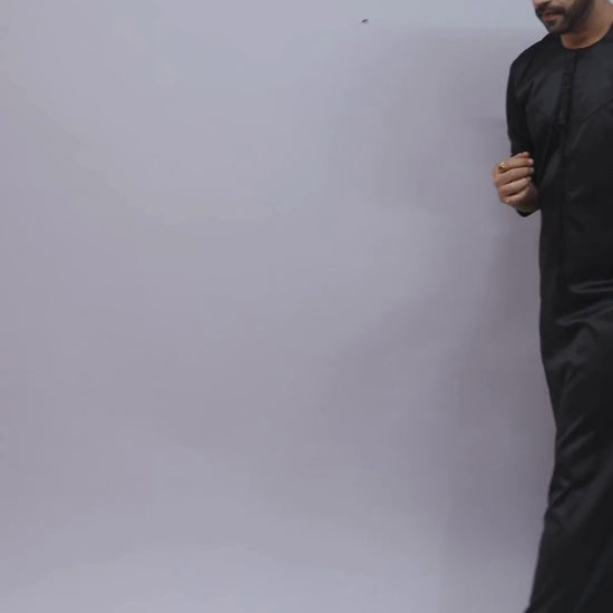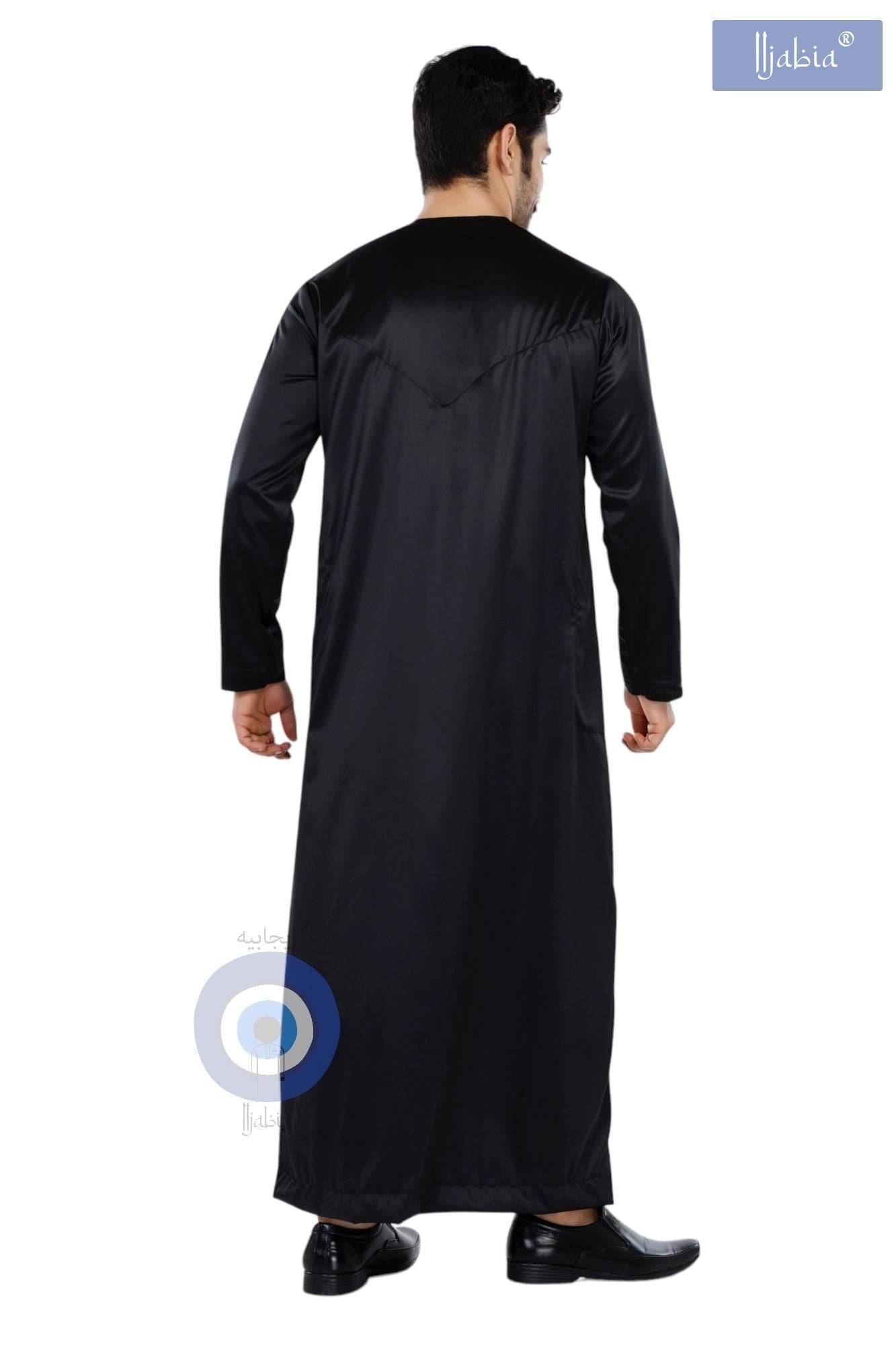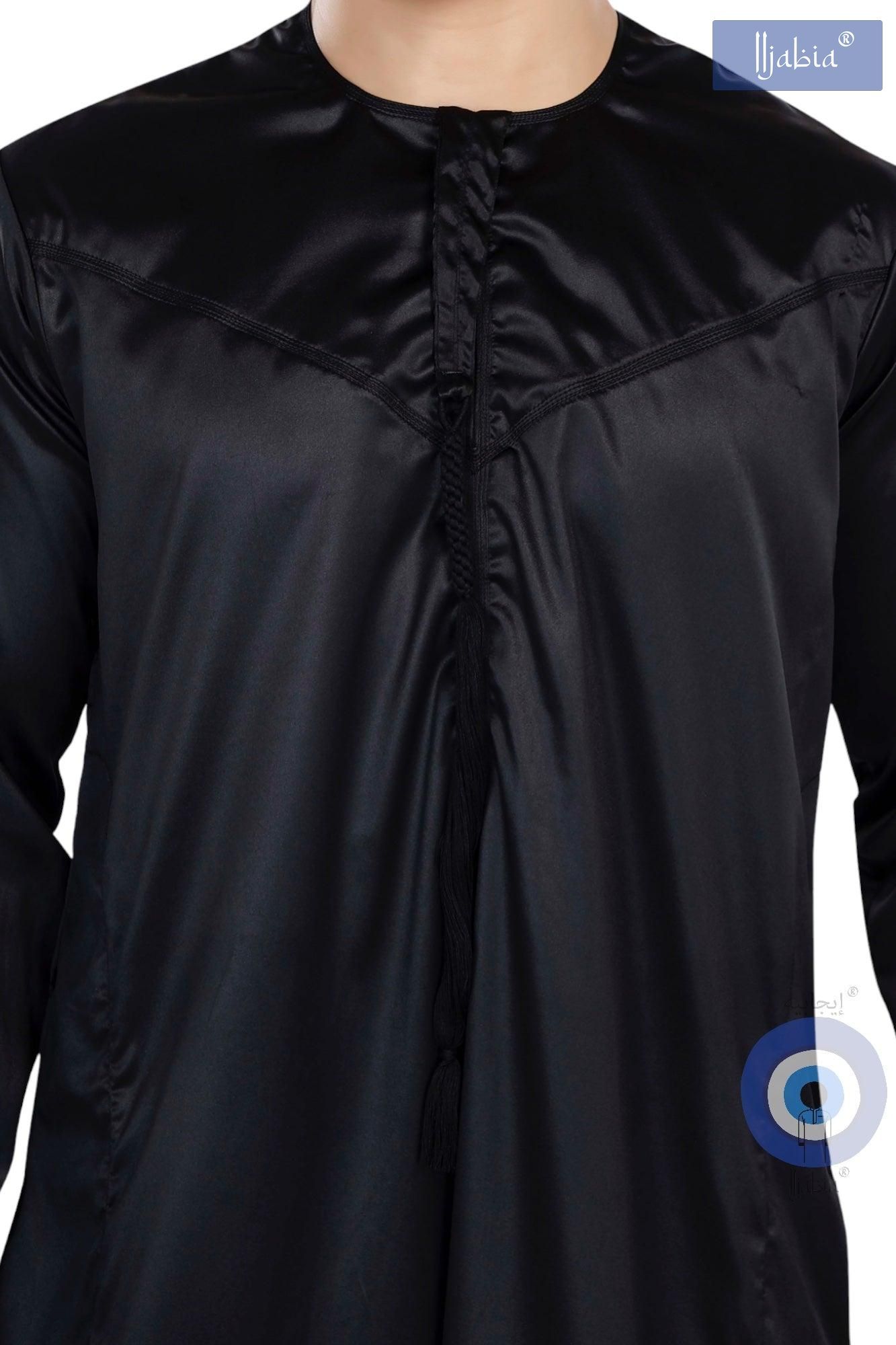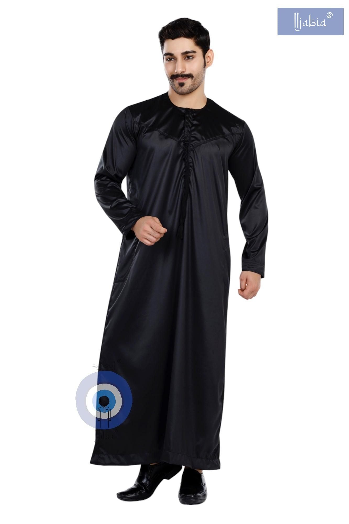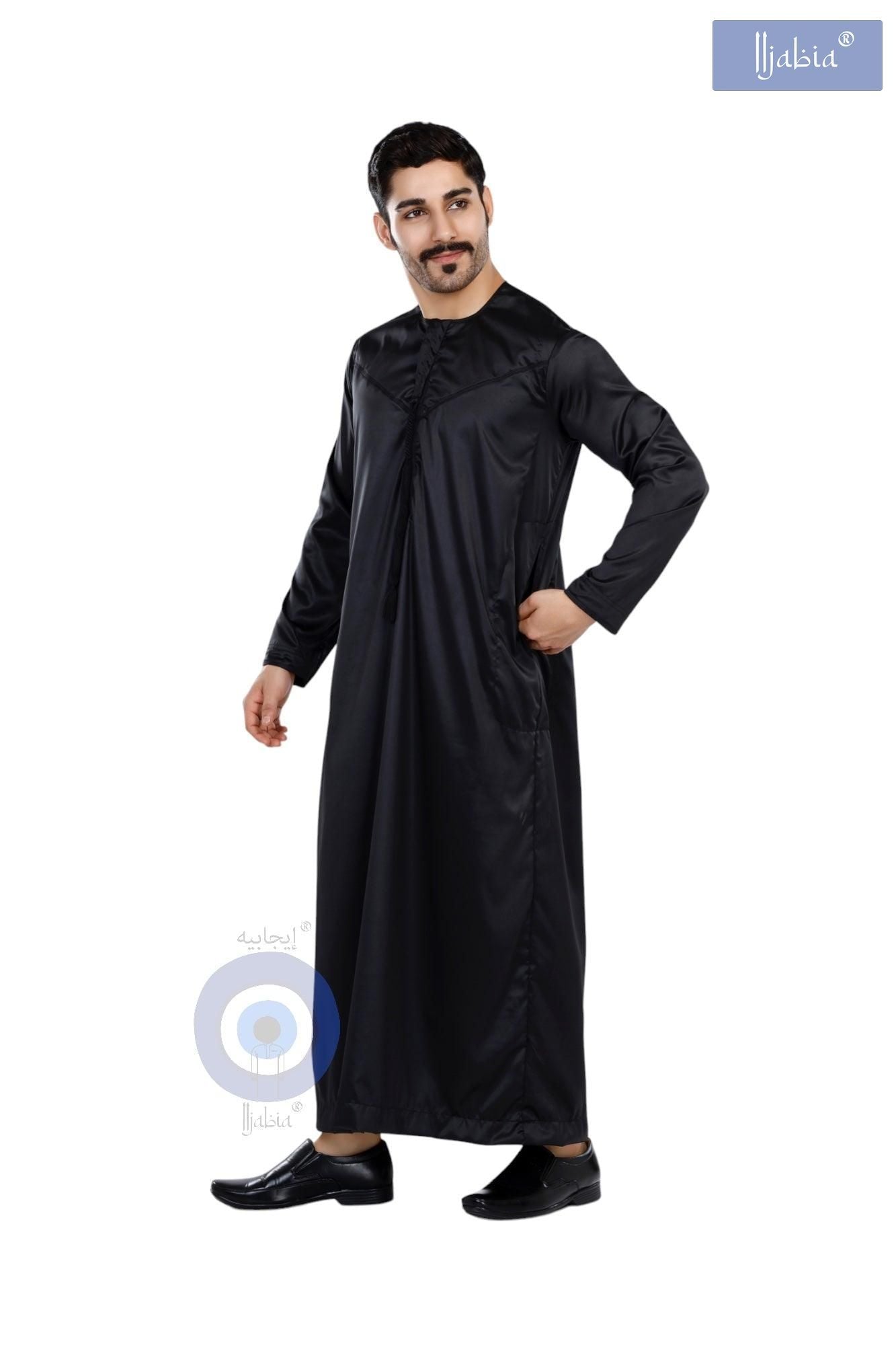 भारतीय चमकदार कपड़ा अमीराती पुरुष ओमानी थोब - पूरी आस्तीन - काला