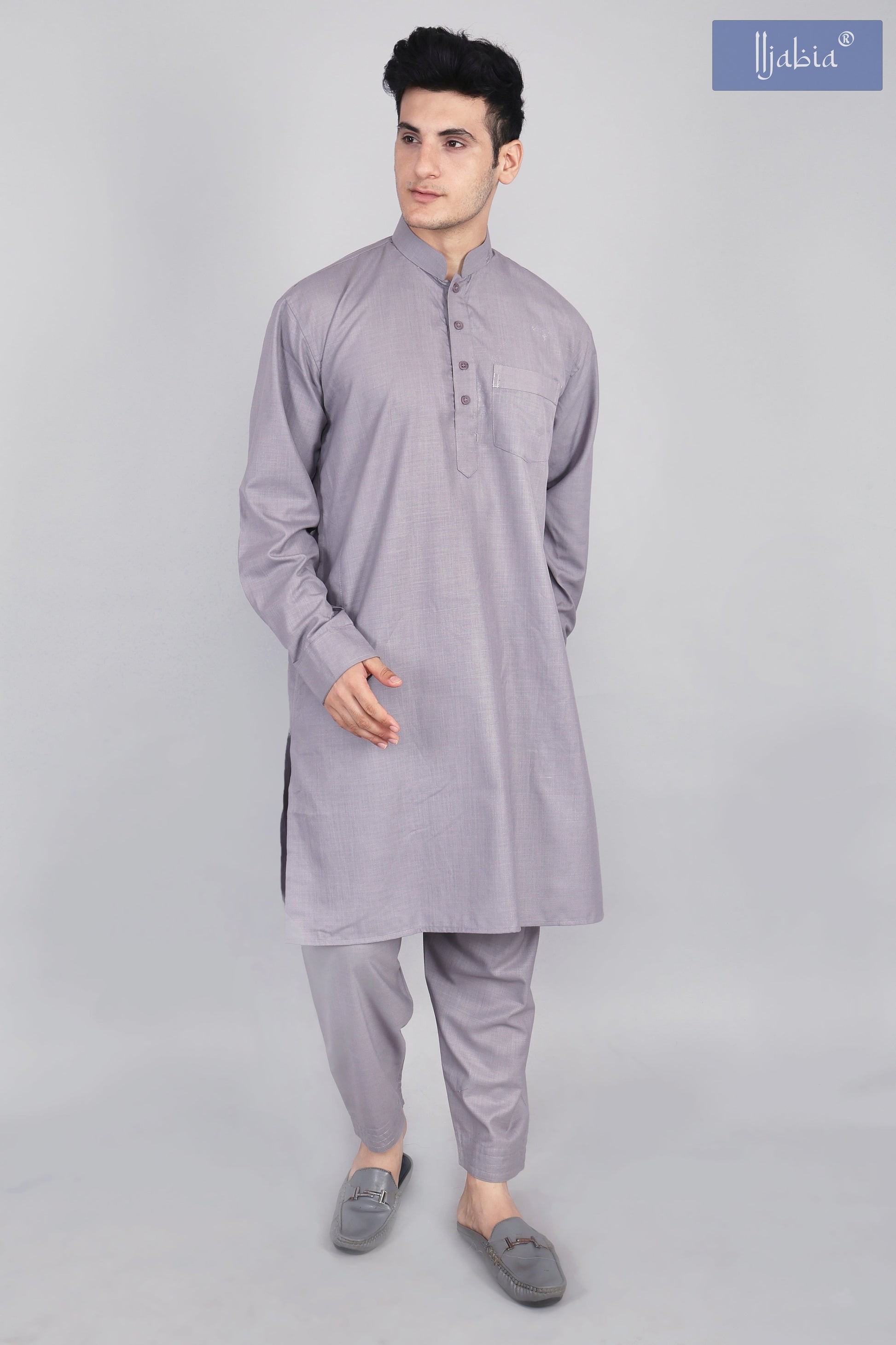 Mens Grey Kurta and Pyjama Set