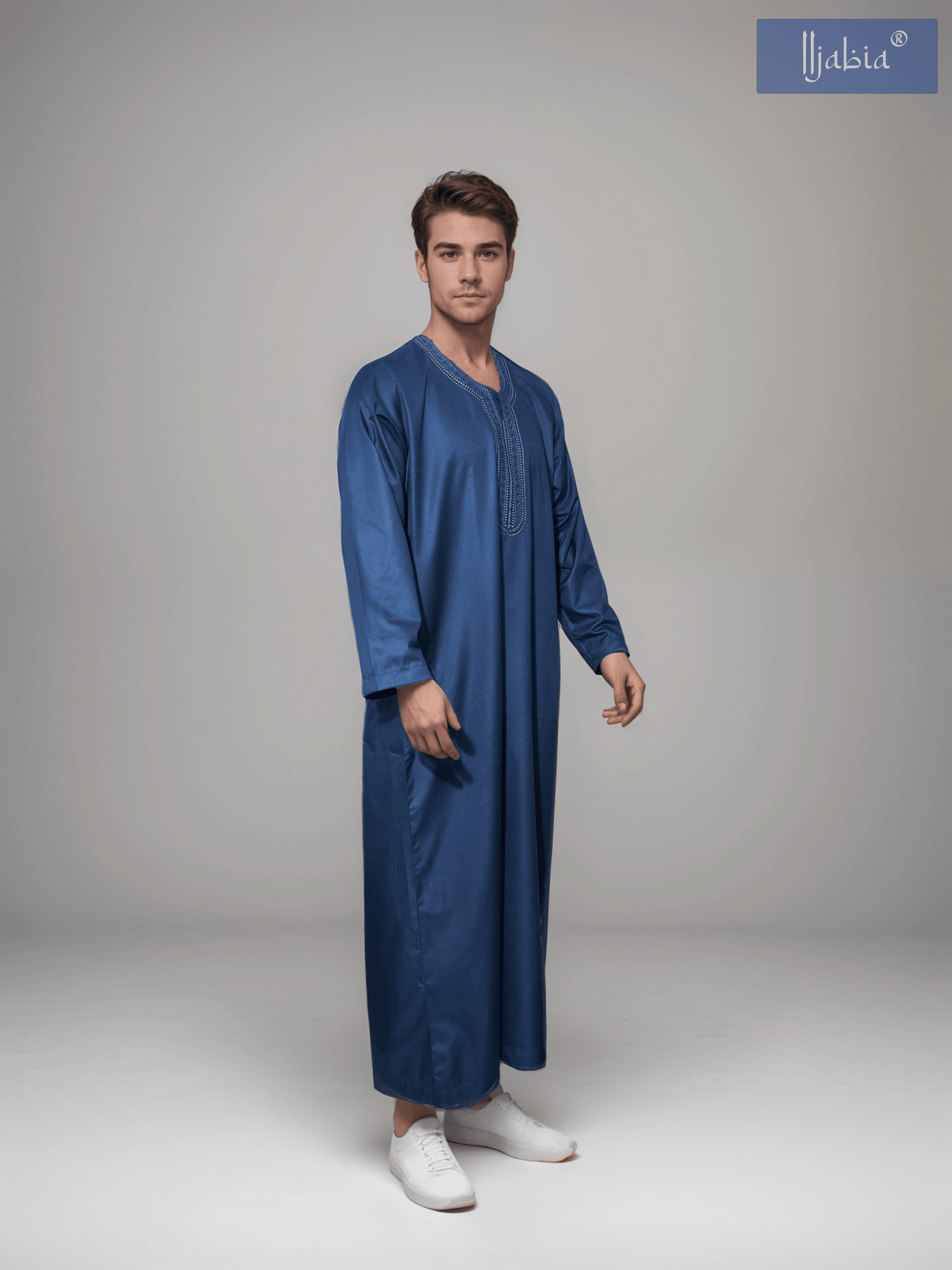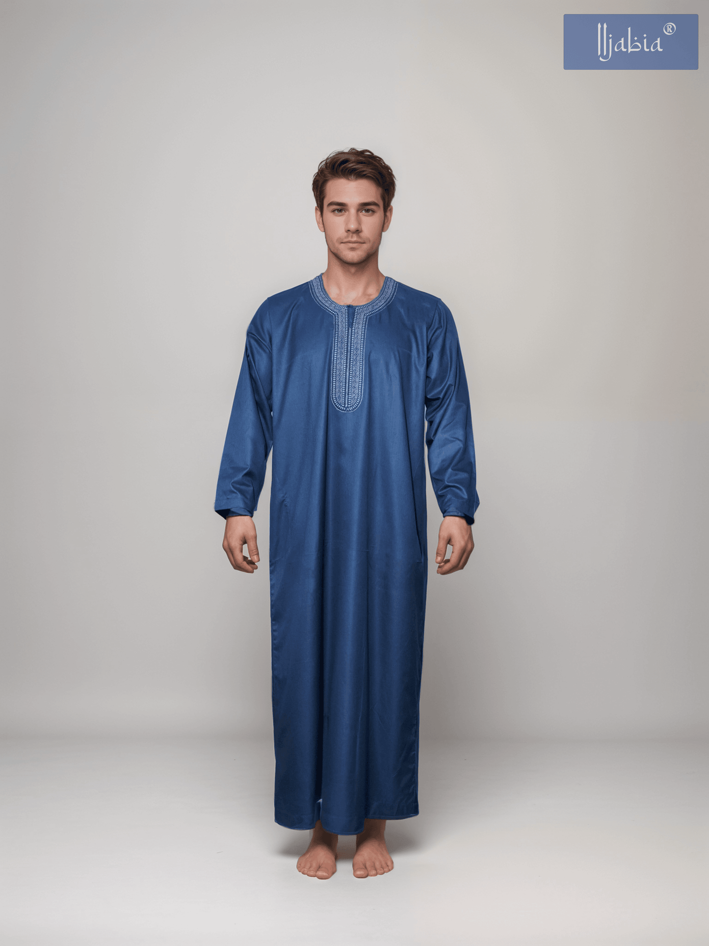 Moroccan Embroidery Mens Thobe - Full Sleeves - D2 - Blue